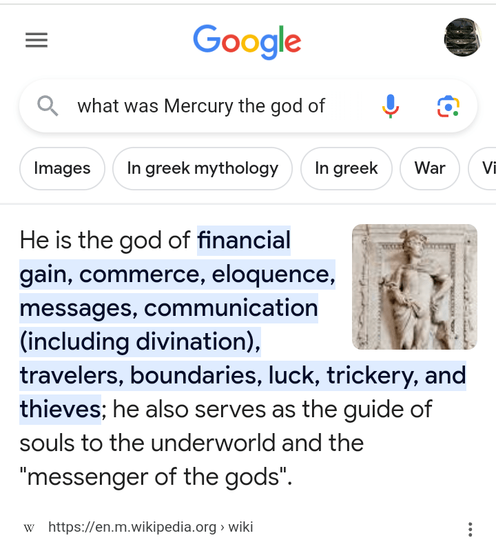 Mercury was the god of,,,the god of… shit, I only remember Mars.